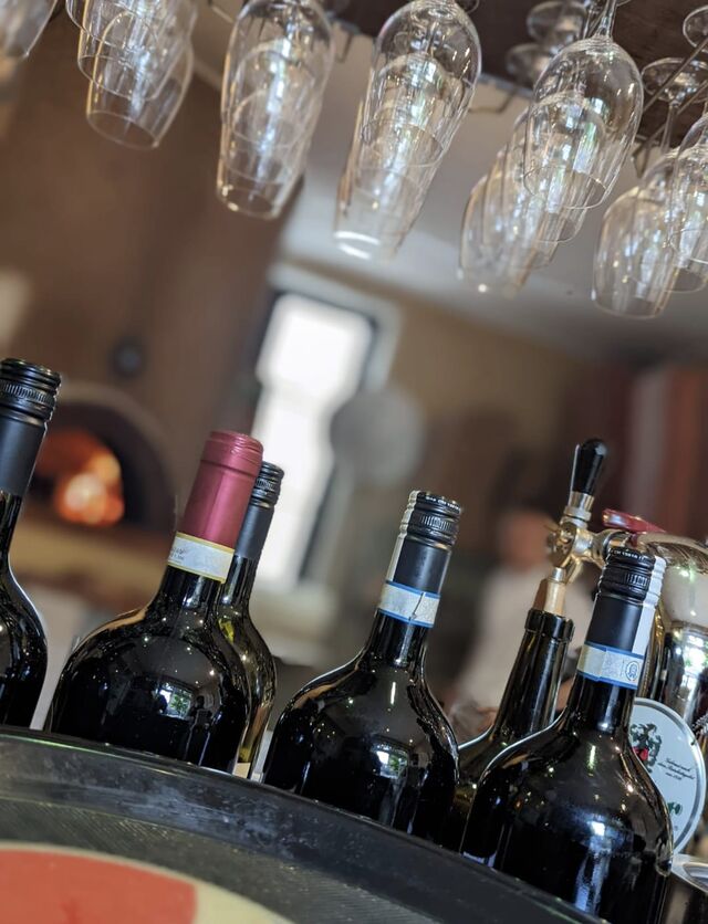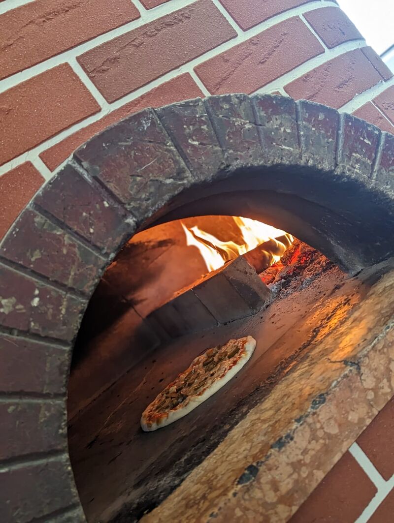 Wir backen unsere Pizzen auf traditionelle Weise in unserem Steinofen. So geht das zubereiten der Pizzen schneller und unsere Gäste können eher Genießen!